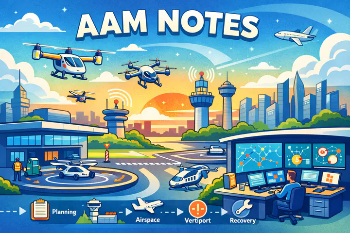 Notes of Adanced Air MobilityJan 20, 2026 AAM notes and reviewsA collection of my reviews and notes on Advanced Air Mobility (AAM).AAM Operations: End-to-End Overview + UTM-Style ManagementAAM UAM UTMXingmin WangAssistant Research ScientistTraffic operations with connected & automated vehicles